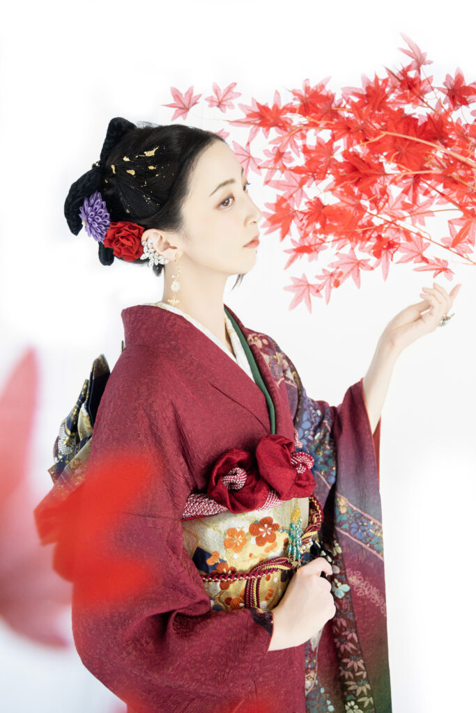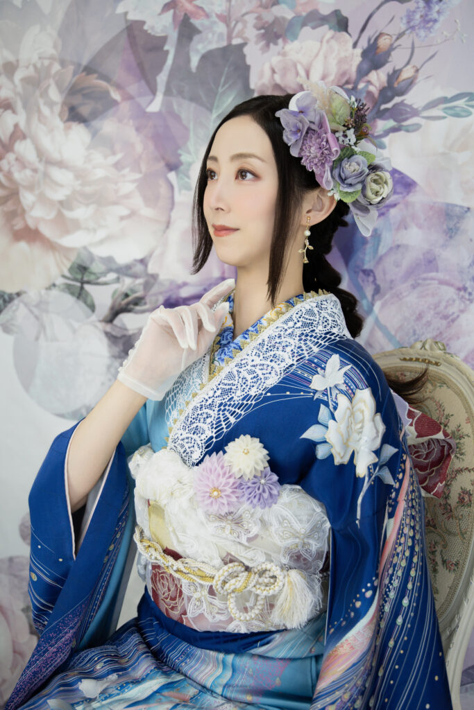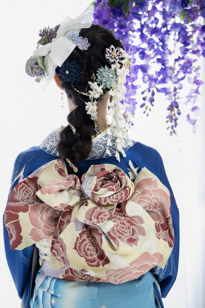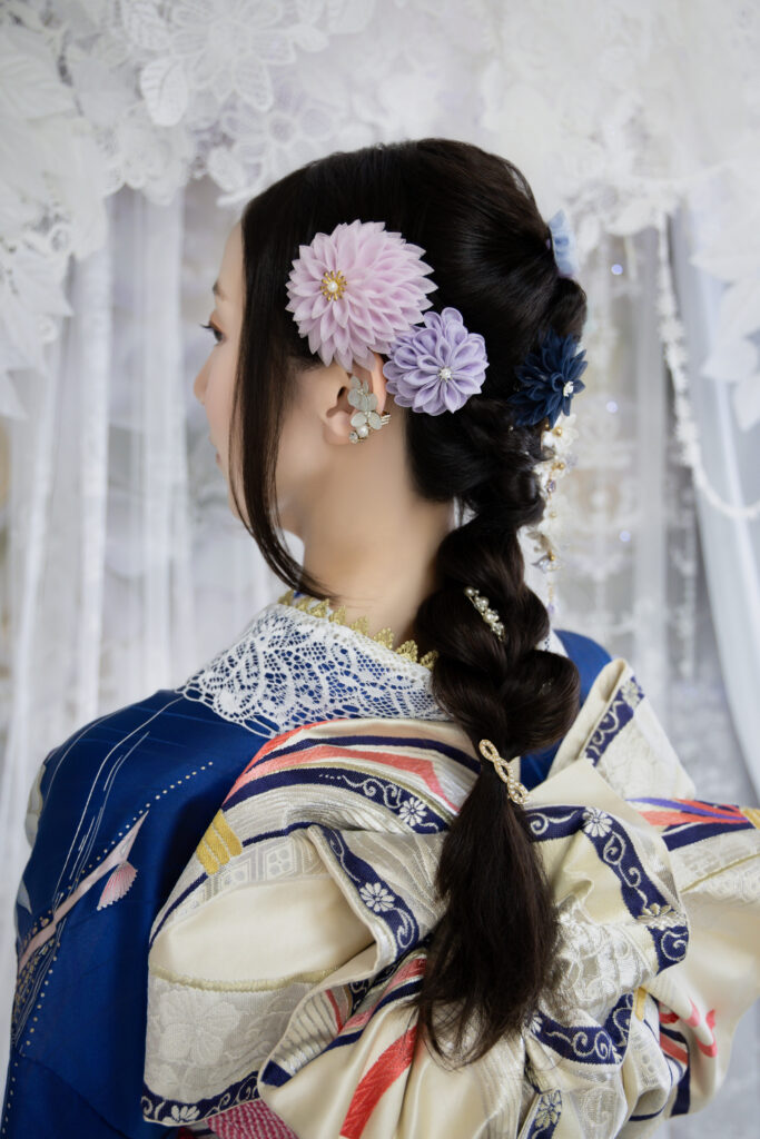 (髪の長さや量にもよりますが通常のお仕度時間70分(着付け40分+ヘアセット30分)に加えさらに+30~40分ほどお時間いただきます。)