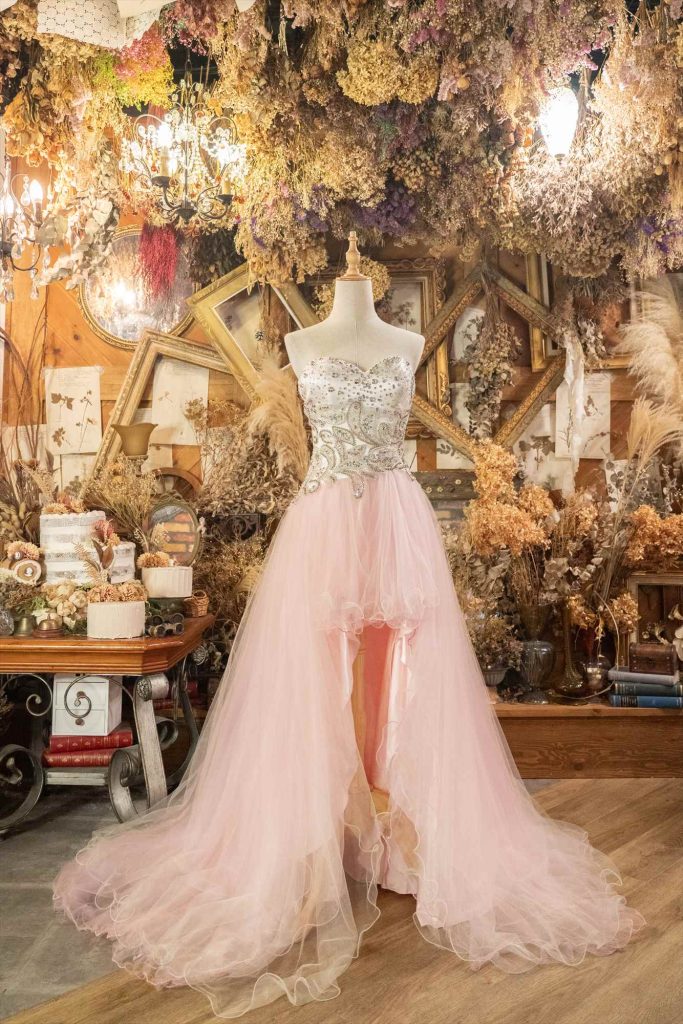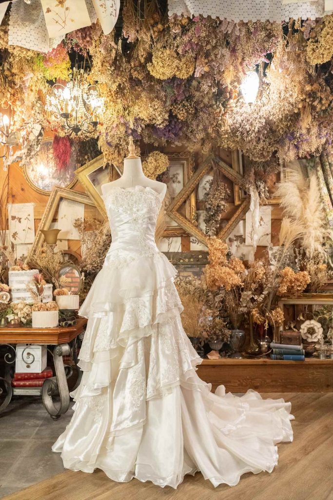 和ドレス撮影が終わった後、自撮りタイムに着物だけ脱いで通常のドレスとしてもご撮影いただけます。