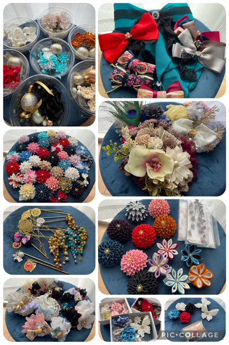 (内容:2wayブローチ1点・つまみ細工Uピン3本・デコレーションUピン3~5本)