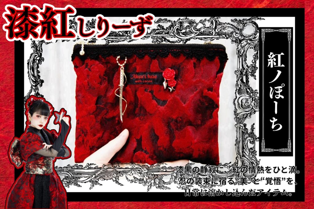 2つの魅力を兼ね備えた赤莉様をイメージしたアクセサリーやポーチを販売いたします。